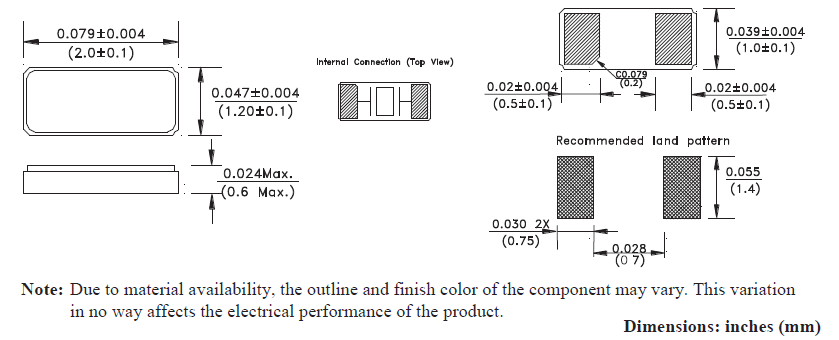 ABS06-107-32.768KHZ-T,2012mm,Abracon實(shí)時時鐘晶振,ABS06,兩腳貼片晶振,尺寸圖