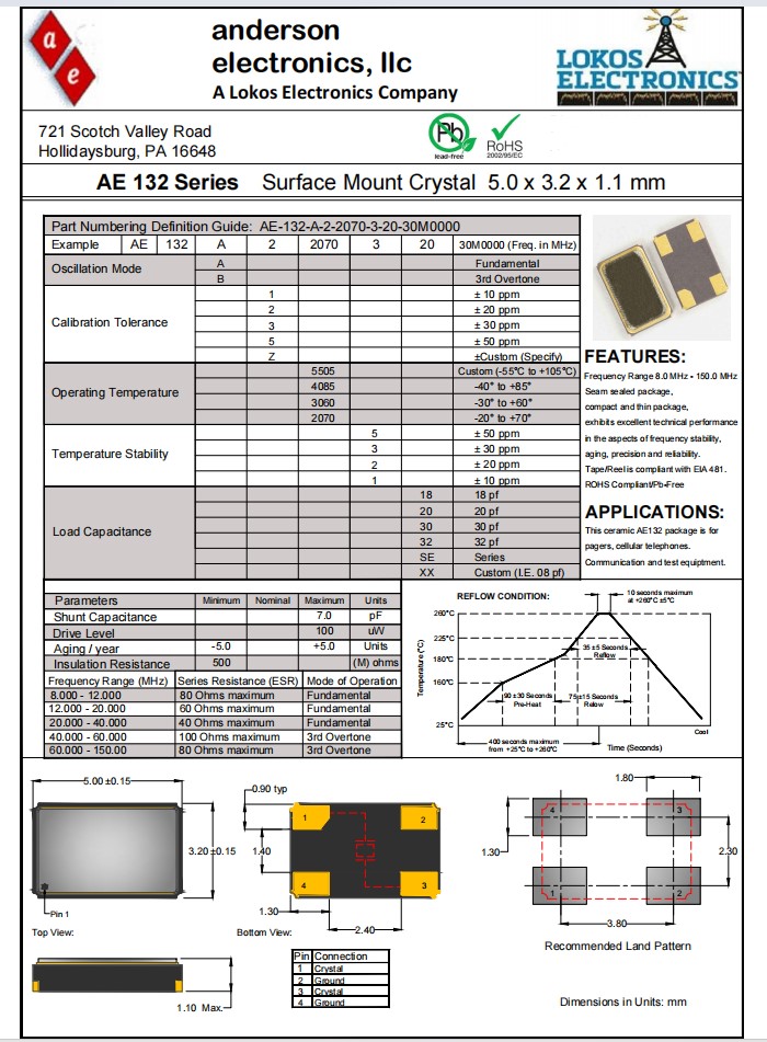 AE-132-A-2-5505-3-20-24M0000,5032mm,Anderson晶振,AE132,尋呼機應用晶振,參數表