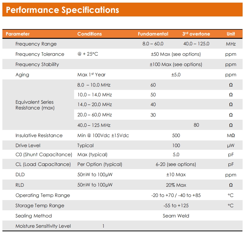 | C0 (Shunt Capacitance) | Max (typical) 5.0 pF | ||||||||||||||||||||||||