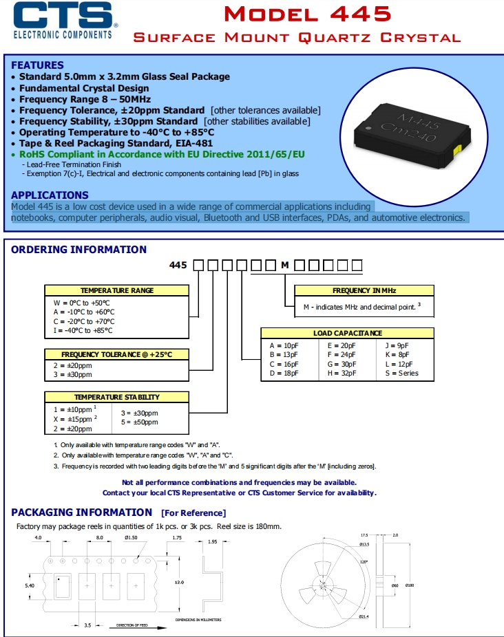 | 445C33S14M31818 | CTS晶振 | 445 | MHz Crystal | 14.31818MHz |