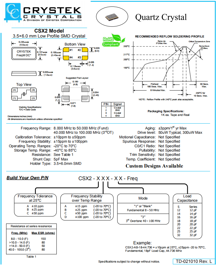 CRYSTEK晶振,CSX2晶振,高品質石英晶體.普通貼片石英晶振外觀使用金屬材料封裝的,具有高穩(wěn)定性,高可靠性的石英晶體諧振器,晶振外觀本身使用金屬封裝,充分的密封性能,可確保其高可靠性,采用編帶包裝,外包裝采用朔膠盤,可在自動貼片機上對應自動貼裝等優(yōu)勢.