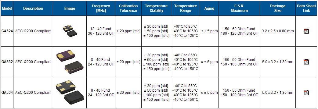 GA534無(wú)源晶振,西迪斯5032mm諧振器,計(jì)算機(jī)晶振,標(biāo)準(zhǔn)5.0mm x 3.2mm陶瓷面封裝,頻率范圍8 ~ 40 MHz基本,24 ~120 MHz 3泛音,頻率公差;±20 ppm,±30 ppm和±50 ppm頻率穩(wěn)定度,工作溫度范圍-40℃~+ 125℃,標(biāo)準(zhǔn)磁帶和卷軸包裝標(biāo)準(zhǔn),通過(guò)無(wú)鉛認(rèn)證符合歐盟指令(歐盟-無(wú)鉛終止完成免稅,電氣和電子元件無(wú)鉛), GA534是一個(gè)低成本的專(zhuān)門(mén)開(kāi)發(fā)用于汽車(chē)電子晶體.