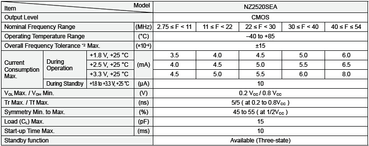 CMOS輸出晶振,NZ2520SEA晶體振蕩器,小體積有源晶振,具備簡單的溫度補償功能的高精度鐘用晶體振蕩器,可以做到-40~+85℃下±15×10-6以內的綜合頻率偏差,在具備簡單溫度補償功能的同時,可對應CMOS輸出,并且為了防止無線通信用途的無線頻率的干擾,對高次諧波進行了抑制.