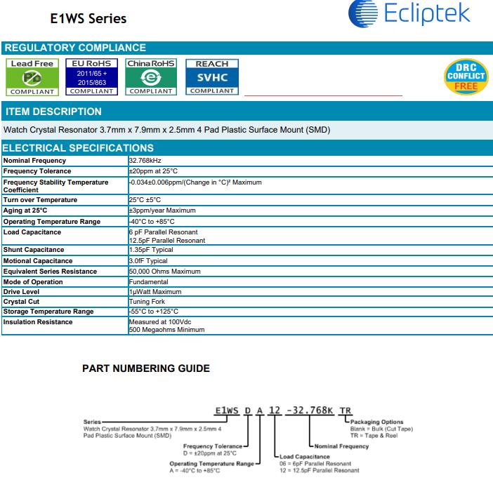 | Load Capacitance | 12.5pF Parallel Resonant |