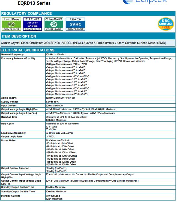 日蝕ECLIPTEK晶振公司將有效率的使用自然資源和能源,以便從源頭減少廢物產生和排放.我們將在關注于預防環境和安全事故,保護公眾健康的同時,努力改進我們的操作.我公司將積極參與加強公眾環境、健康和安全意識的活動,提高公眾對普遍的環境、健康和安全問題的注意.EQRD13時鐘振蕩器,ECLIPTEK晶振,EQRD13A2J-12.000M-TR晶振.