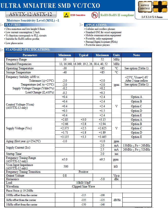 Abracon晶振,溫補(bǔ)振蕩器,ASTX-12有源晶振.小型貼片有源晶振,體積的變小也使產(chǎn)品帶來(lái)了更高的穩(wěn)定性能,接縫密封石英晶體振蕩器,精度高,覆蓋頻率范圍寬的特點(diǎn),貼片高速自動(dòng)安裝和高溫回流焊設(shè)計(jì),Optionable待機(jī)輸出三態(tài)輸出功能,電源電壓范圍:1.8V?5V,高穩(wěn)定性,低抖動(dòng),低功耗,主要應(yīng)用領(lǐng)域:無(wú)線通訊,智能手機(jī),平板筆記本W(wǎng)LAN,藍(lán)牙,數(shù)碼相機(jī),DSL和各式IT產(chǎn)品的晶振應(yīng)用,三態(tài)功能,PC和LCDM等數(shù)碼領(lǐng)域,符合RoHS/無(wú)鉛.