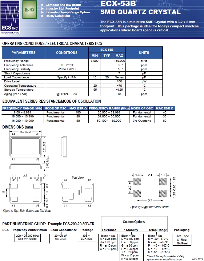 | ECS晶振 | 單位 | ECX-53B晶振 | 石英晶振基本條件 |