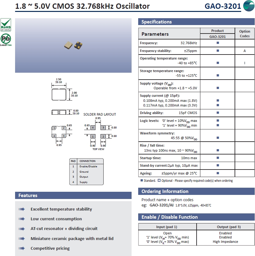Golledge晶振,石英晶振,GAO-3201表晶.小型,薄型,質(zhì)地輕的表面貼片音叉型晶體振蕩器,手機(jī)晶體,產(chǎn)品體積小,特別適用于各種小巧的便攜式消費(fèi)電子數(shù)碼產(chǎn)品,在移動(dòng)通信領(lǐng)域廣泛的應(yīng)用,晶振產(chǎn)品本身可發(fā)揮優(yōu)良的電氣特性,滿足無(wú)鉛焊盤(pán)的高溫回流溫度曲線要求.