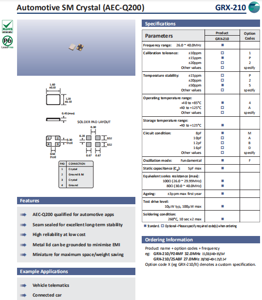 | Golledge晶振 | 單位 | GRX-210晶振 | 石英晶振基本條件 |
