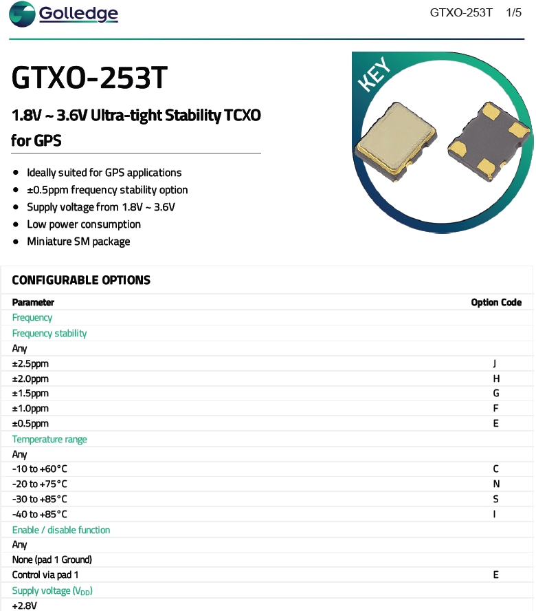 Golledge晶體,Golledge Crystal,GTXO-253T振蕩子.貼片石英晶體,體積小,焊接可采用自動貼片系統(tǒng),產(chǎn)品本身小型,表面貼片晶振,特別適用于有小型化要求的電子數(shù)碼產(chǎn)品市場領(lǐng)域,因產(chǎn)品小型,薄型優(yōu)勢,耐環(huán)境特性,包括耐高溫,耐沖擊性等,在移動通信領(lǐng)域得到了廣泛的應(yīng)用,晶振產(chǎn)品本身可發(fā)揮優(yōu)良的電氣特性,滿足無鉛焊接的高溫回流溫度曲線要求.
