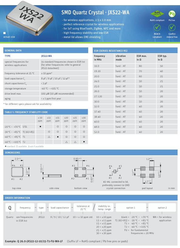 | JAUCH晶振 | 單位 | JXS22晶振 | 石英晶振基本條件 |