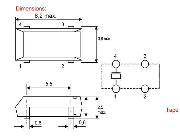 建議將輸出負(fù)載安裝在盡可能靠近石英SMD晶振的地方(在20mm范圍之間).