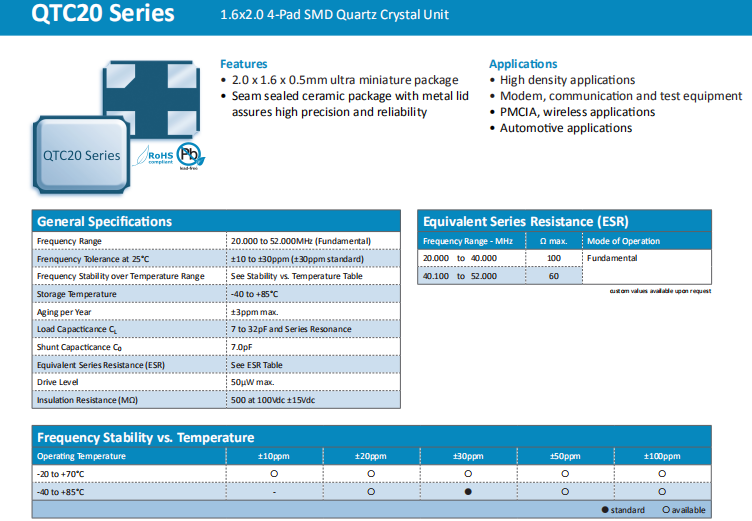 | Quarztechnik晶振 | 單位 | QTC20晶振 | 石英晶振基本條件 |