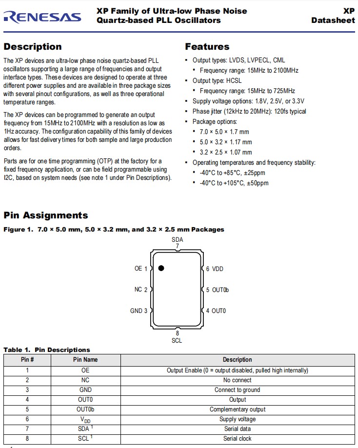 | XPL526125.000000I | Renesas晶振 | XTAL OSC XO 125.0000MHZ LVDS SMD | XPL |