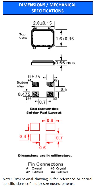 FC1BAEBDI20.0-T1,2016mm,20MHz,FC1BA,FOX晶體諧振器,FC1BACBEI20.0-T3,石英晶振,尺寸圖