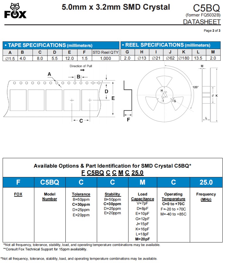 | FQ5032BR-25.000 | Fox晶振 | C5BQ | 25MHz | 4-SMD, No Lead | ±50ppm |