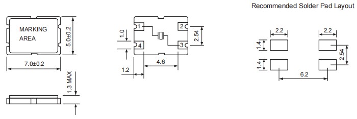 ●工業標準足跡,緊湊型尺寸(7x5mm),最大高度為1.3mm