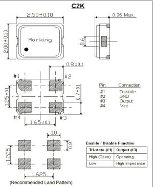 | Tristate Option | Enable | Pin 1 = Hi or Open , Pin 3 active | ||