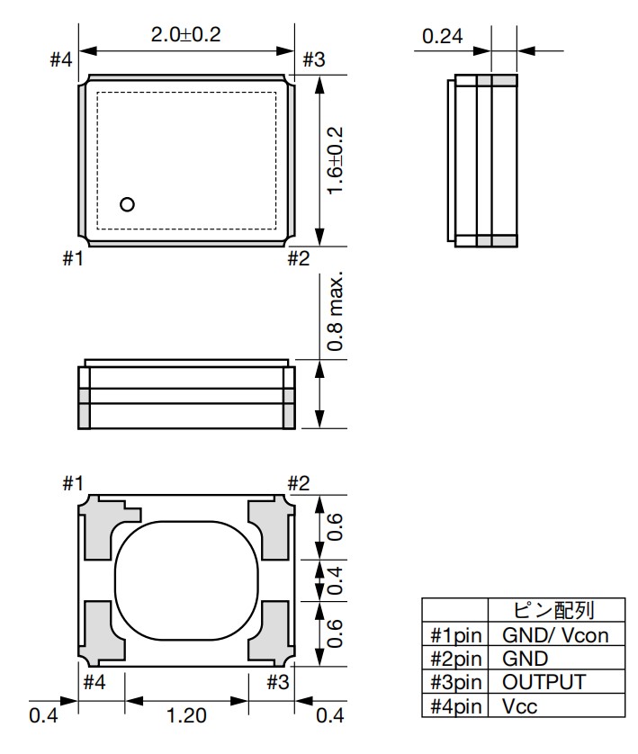 KT2016K26000BCW18ZAS,KT2016K,26MHz,Kyocera藍(lán)牙晶振,2016mm晶振,移動通訊晶振,尺寸圖