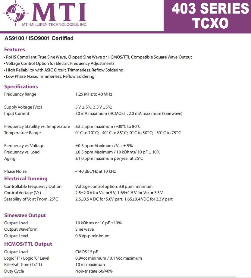 米利倫TCXO晶振,403系列石英貼片晶振,物聯(lián)網(wǎng)應(yīng)用晶振,羅拉LORA模塊晶振,高性能晶振,參數(shù)表