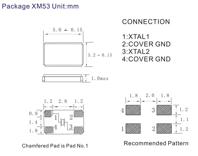 XM53-12P10FC10-XM53-T12M,5032mm,Macrobizes品牌,12MHz,電信應用晶振,尺寸圖