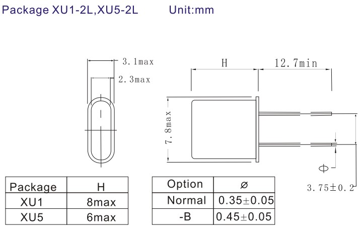 XU1-20P103C10-2L-B75.7875MHz,XU1,Macrobizes插件晶振,無源晶振,通信設(shè)備,尺寸圖