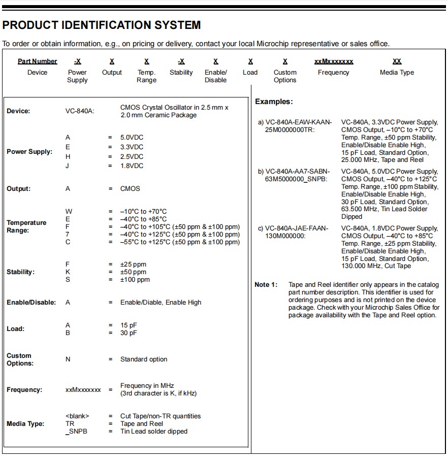 VC-840A-AA7-SABN-63M5000000,63.5MHz,2520mm,Microchip品牌,VC-840A,晶體振蕩器,參數表