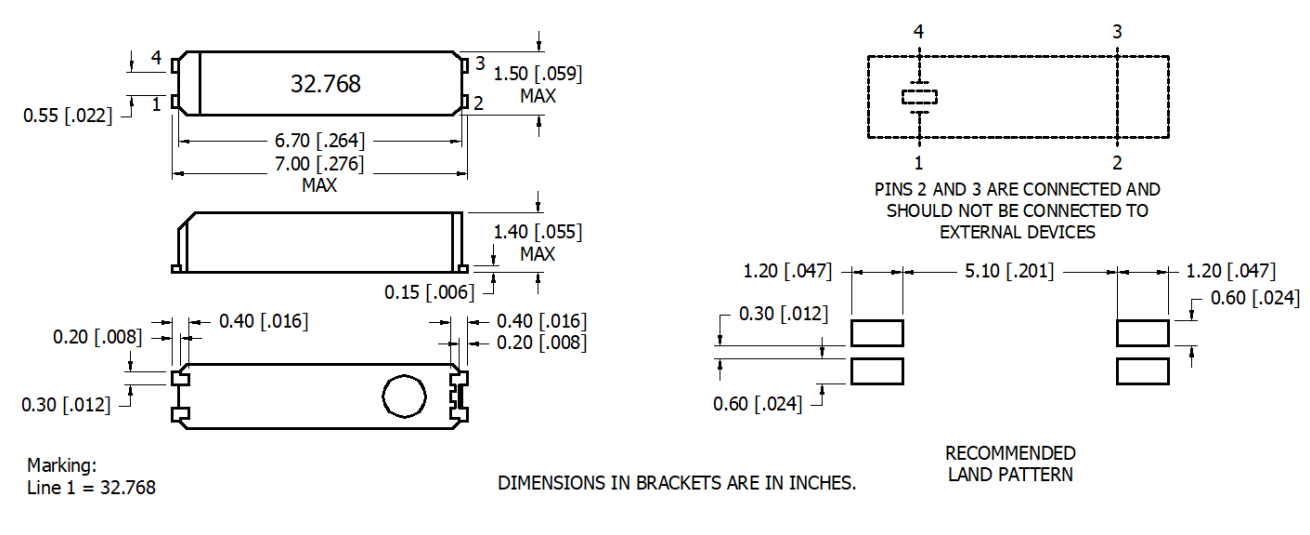 麥迪康7015mm晶振,WC146SMF50-32.768KHz-T,儀器儀表設備6G晶振,石英貼片晶振,石英晶體諧振器,尺寸圖