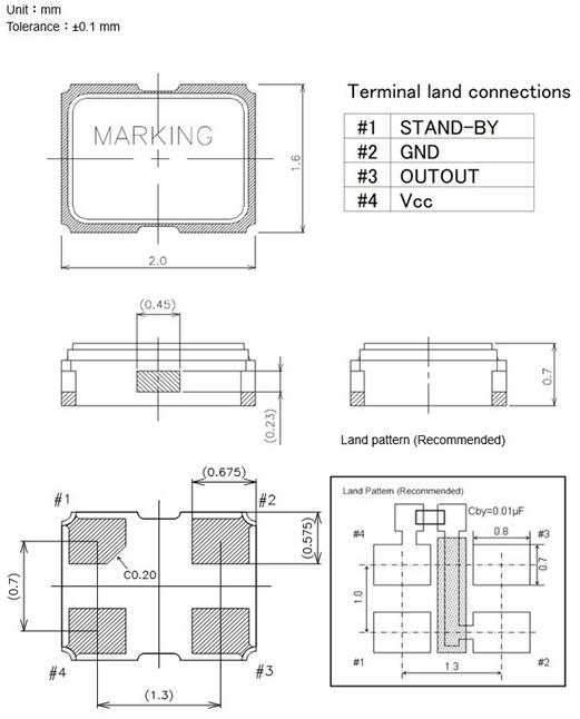 NDK汽車電子專用晶振|NZ2016SH-24.000MHZNSC5022C|2016|1.8V 尺寸圖