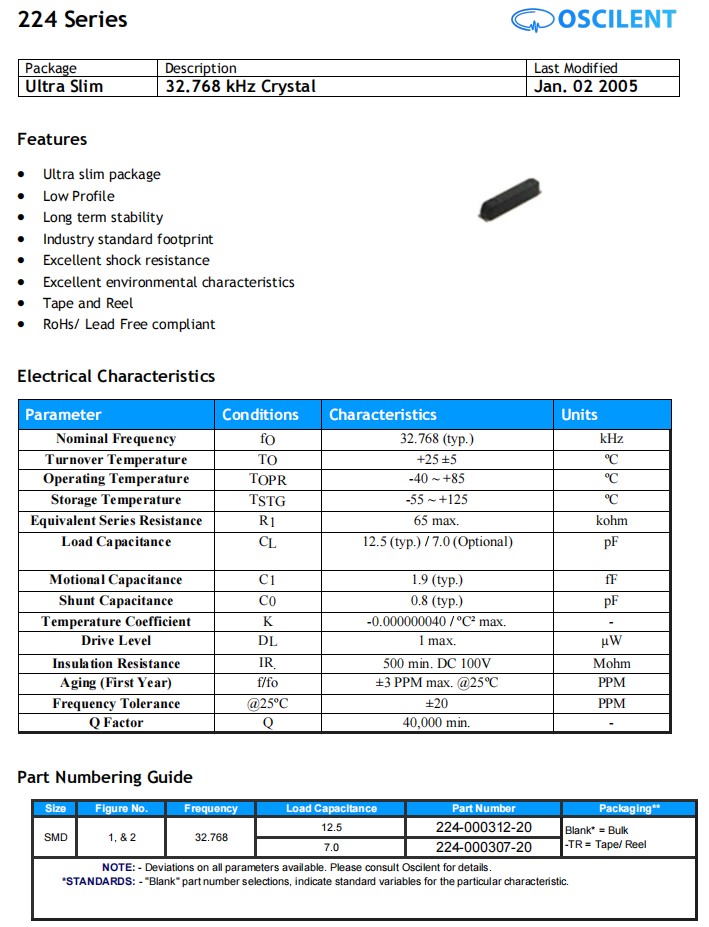 224-000312-20,7015mm,32.768KHz,Oscilent品牌,晶振廠家,陶瓷晶振,參數(shù)表