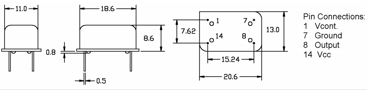 TC60-3,16.384MHz,TCXO,PDI品牌,14針通孔石英晶振,溫補(bǔ)晶振,航空航天應(yīng)用晶振,尺寸圖
