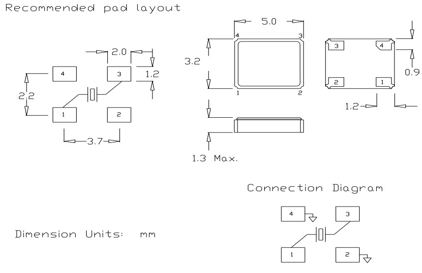 QCM40-21AF18pF-26.000MHz,26MHz,5032mm,QVS諧振器,QCM40,藍牙模塊晶振,尺寸圖
