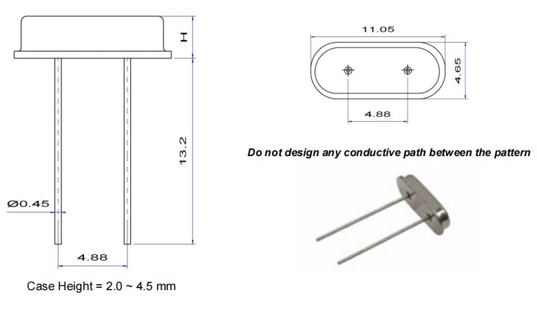 QuartzCom石英通插件晶振,HC-49S,微處理器應(yīng)用晶振,尺寸圖
