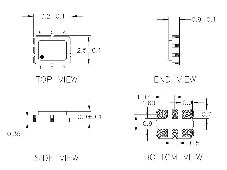 Renesas六腳貼片晶振,XAH335180.000000I,高精密晶體振蕩器,尺寸圖