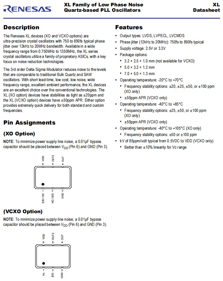 Renesas晶體振蕩器,XLJ536024.000000I,低噪聲晶振
