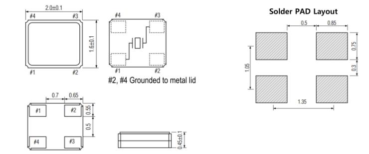 在一個不同擴張系數電路板(環氧玻璃)上焊接陶瓷封裝石英晶振時,在溫度長時間重復變化時可能導致端子焊接部分發生斷裂,請事先檢查焊接特性。