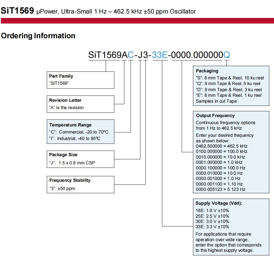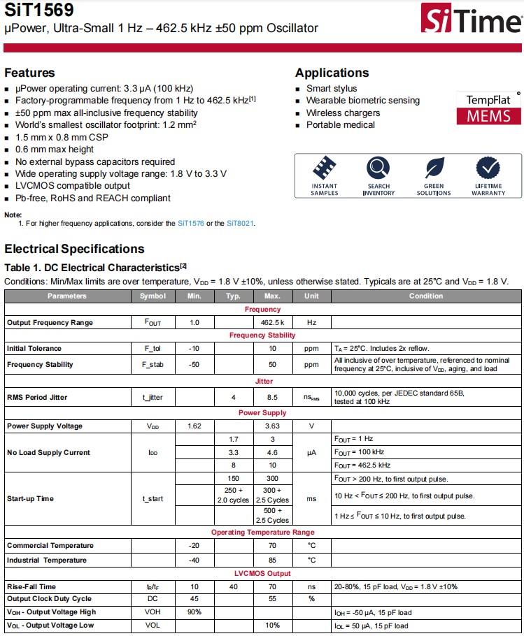 SiTime超小型晶振,SiT1569AI-J3-33E-0462.500000,便攜式醫療6G晶振,LVCMOS振蕩器,低電壓晶振,參數表
