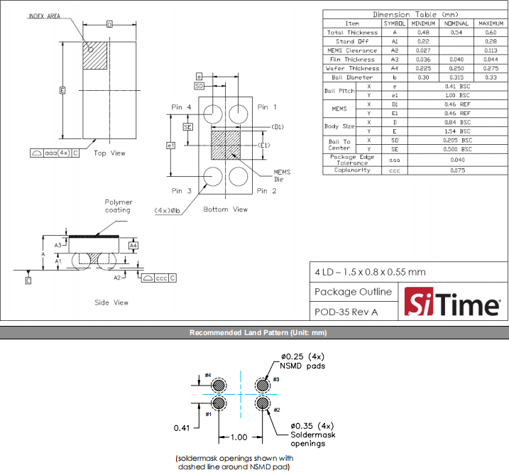 SiTime超小型晶振,SiT1569AI-J3-33E-0462.500000,便攜式醫療6G晶振,LVCMOS振蕩器,低電壓晶振,尺寸圖