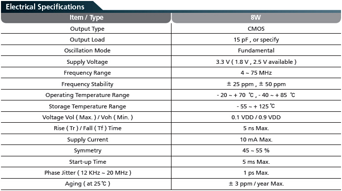 TXC可穿戴設備晶振,8W2520mm振蕩器,普通有源晶振,超小SMD接縫密封時鐘晶體振蕩器單位,在無線局域網中的應用,藍牙,DSC,DSL和其他IT產品,三態函數,通過無鉛認證/ Pb免費.
