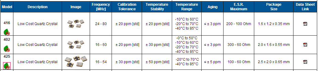 | 頻率公差25℃ | ±30 ppm, Standard | |