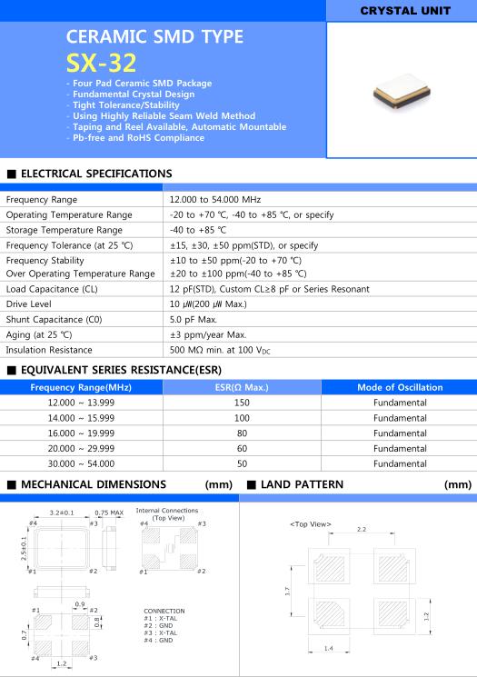 SX-32石英晶體諧振器,Sunny三呢晶振,SP8130J6-16.00000-T&R晶振,超小型表面貼片型SMD晶振,最適合使用在汽車電子領(lǐng)域中,也是特別要求高可靠性的引擎控制用CPU的時(shí)鐘部分.低頻晶振可從7.98MHz起對(duì)應(yīng),小型,超薄型具備強(qiáng)防焊裂性,石英晶體在極端嚴(yán)酷的環(huán)境條件下也能發(fā)揮穩(wěn)定的起振特性,產(chǎn)品本身具有耐熱,耐振,耐撞擊等優(yōu)良的耐環(huán)境特性,滿足無(wú)鉛焊接以及高溫回流溫度曲線要求,符合AEC-Q200標(biāo)準(zhǔn).