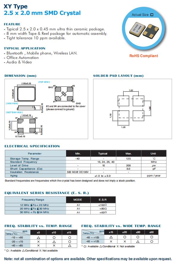 -典型的2.5x2.0x0.45mm超薄陶瓷封裝。