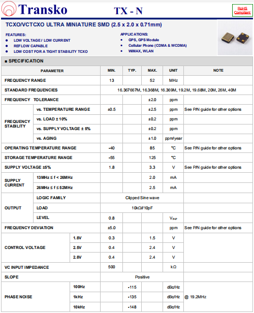 Transko晶振,TX-N晶振,低電壓振蕩器.有源晶振,是只晶體本身起振需要外部電壓供應(yīng),起振后可直接驅(qū)動CMOS 集成電路,產(chǎn)品本身已實現(xiàn)與薄型IC(TSSOP封裝,TVSOP封裝)同樣的1mm厚度,斷開時的消費電流是15 µA以下,編帶包裝方式可對應(yīng)自動搭載及IR回流焊接(無鉛對應(yīng))產(chǎn)品有幾種電壓供選1.8V,2.5V,3V3.3V,5V,以應(yīng)對不同IC產(chǎn)品需要.