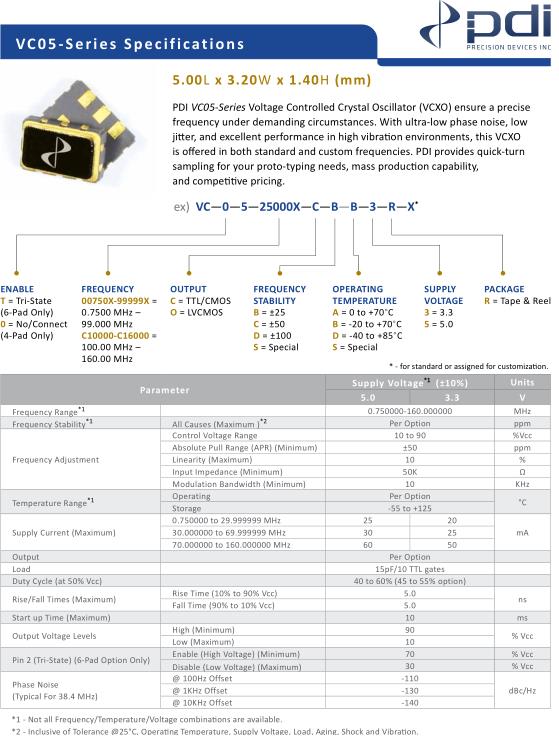 威爾威晶振,VC05壓控晶振,VC05-26000X-CBD3RX晶振,宣布新型TCH系列堅固耐用且同類最佳的溫補晶振(TCXO)。TC6系列溫補晶振進一步擴展了wi2wi的頻率控制有源晶振和定時設備產品組合,以滿足航空電子,太空和軍事市場最苛刻的技術要求。公司已收到TCH系列的首批生產訂單,從大型供應商到航空電子設備和國防市場。“董事會主席Michael Sonnenreich表示。