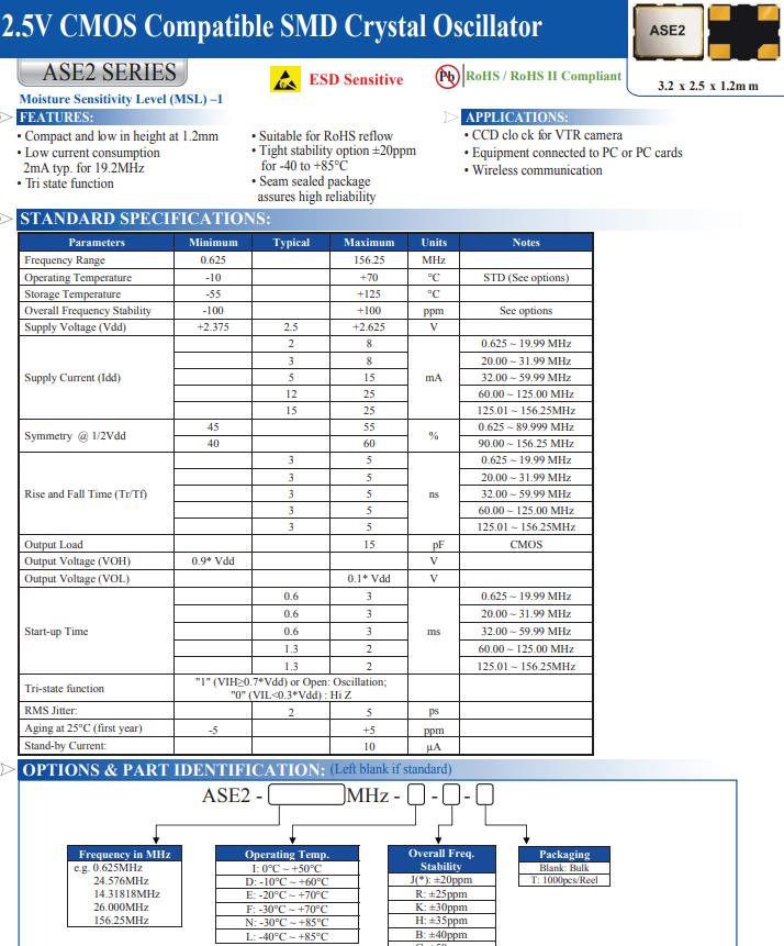| ASE2-12.500MHZ-ET | Abracon晶振 | ASE2 | XO (Standard) | 12.5MHz | 2.5V | -20°C ~ 70°C |