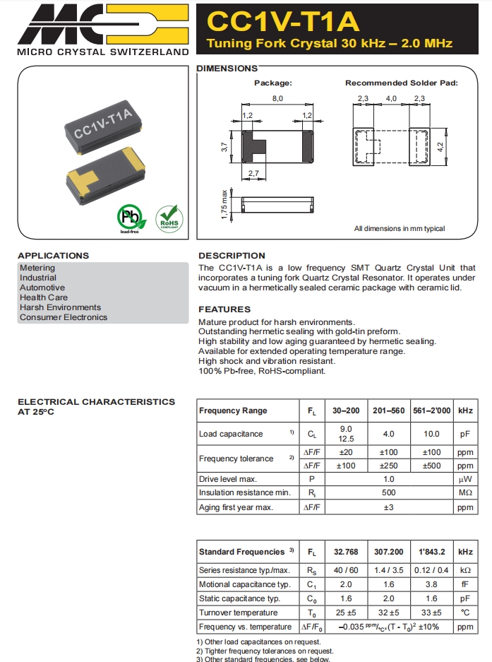 | CC1V-T1A-307.20kHz-4pF-100PPM-TC-QC | Micro晶振 | 晶體 307.200 kHz 4.0 pF 100 PPM -55/+125C |