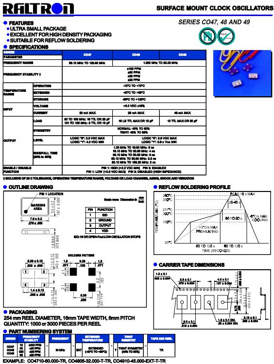 | CO48 系列 14.31818 MHz 7 x 5 mm ±25 ppm 表面貼裝 時鐘振蕩器 | ||||||