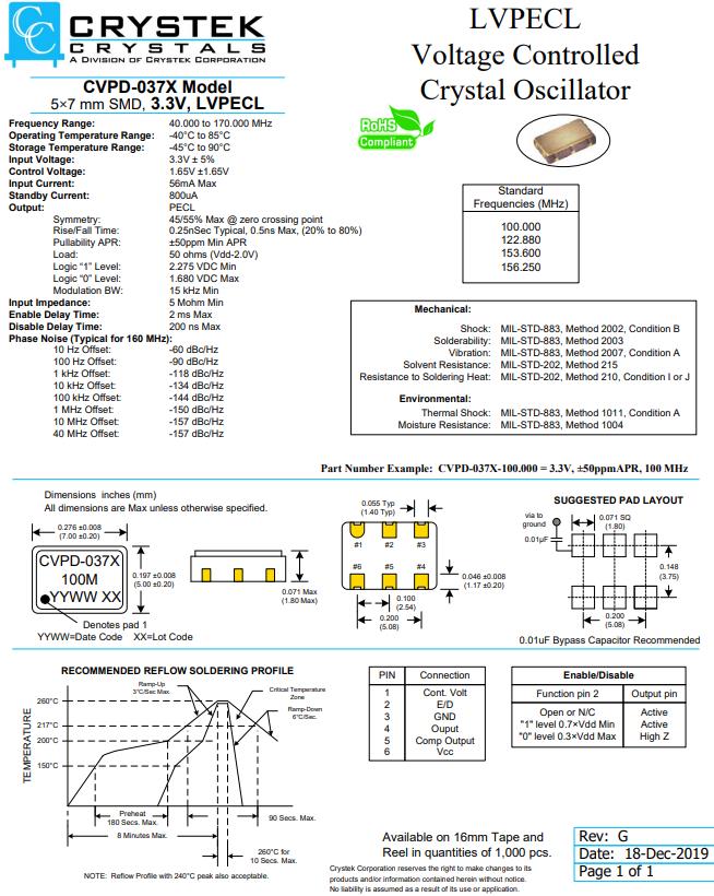 | CVPD-037X-100 | CRYSTEK晶振 | CVPD-037X | Active | VCXO | 100MHz | - | -40°C ~ 85°C |