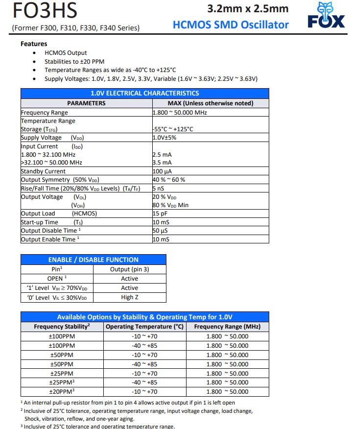 | F335-50 | Fox晶振 | F335 | XO (Standard) | 50MHz | 3.3V |
