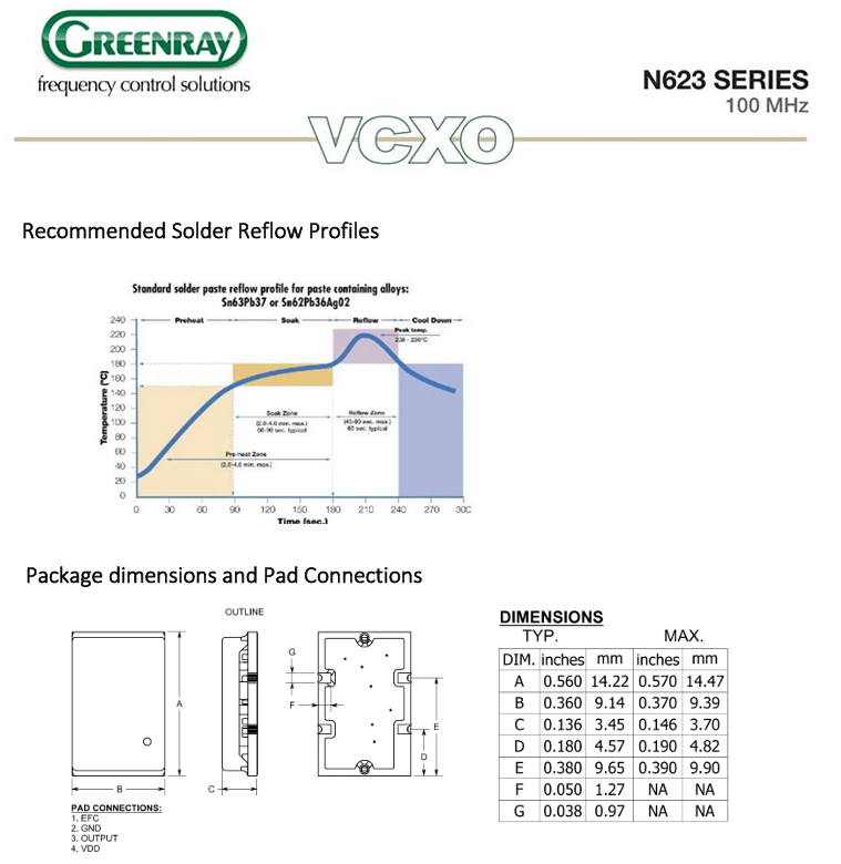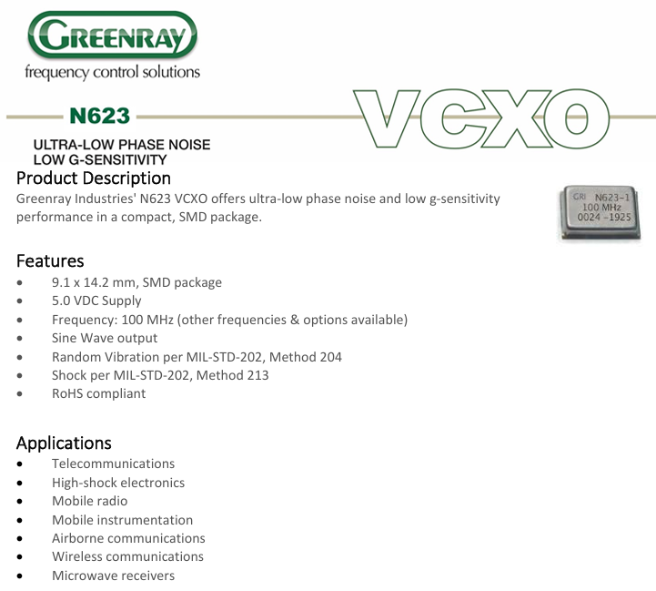 美國Greenray格林雷超低相位噪聲N623單壓控晶振VCXO
